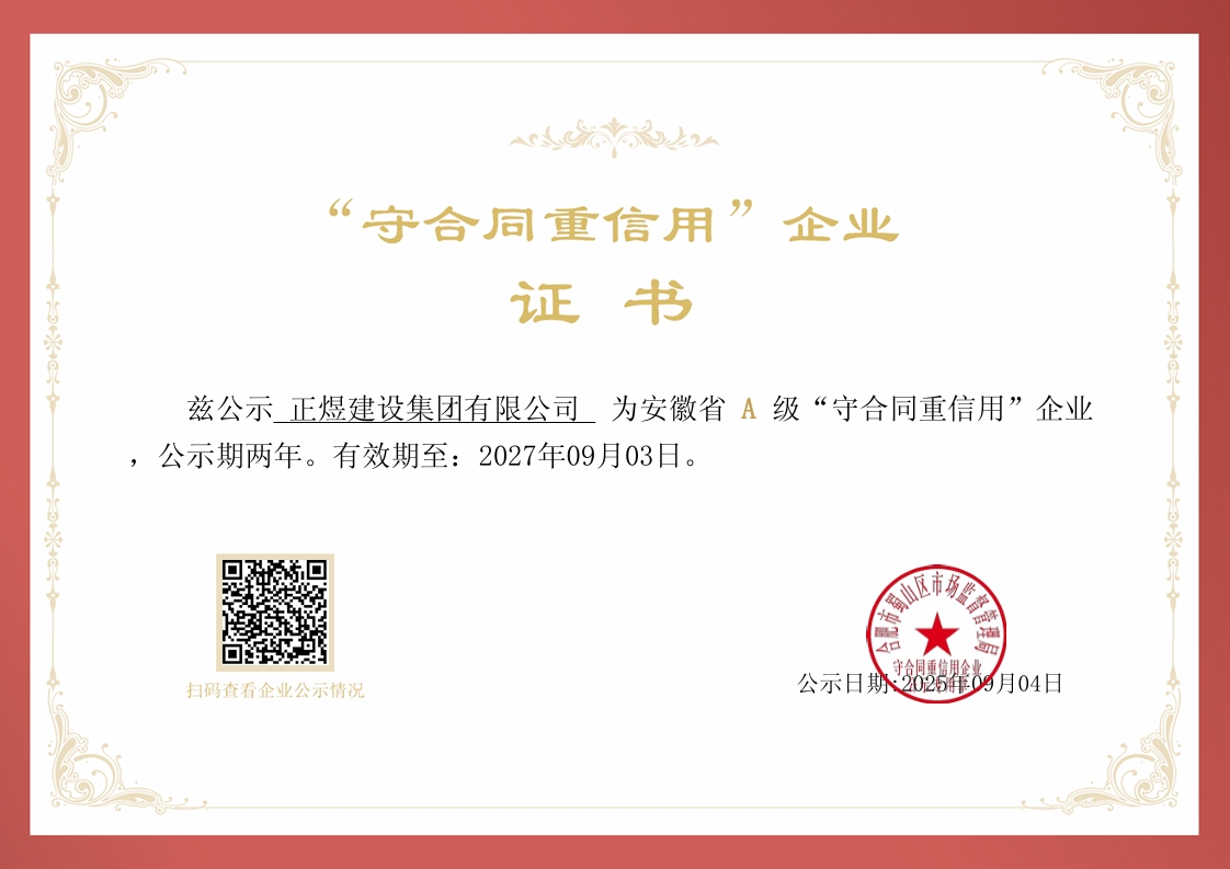 近日,蜀山区市场监督管理局公示了蜀山区2023-2024年度安徽省A级“守合同重信用”企业名单,正煜建设集团凭借扎实稳固的企业信誉与良好的市场口碑成功斩获安徽省A级“守合同重信…