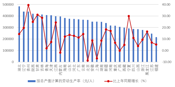 图 5 2025 年上半年各地区建筑业劳动生产率及其增长情况