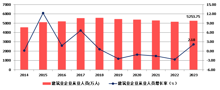 图6 2014-2023年建筑业从业人数增长情况
