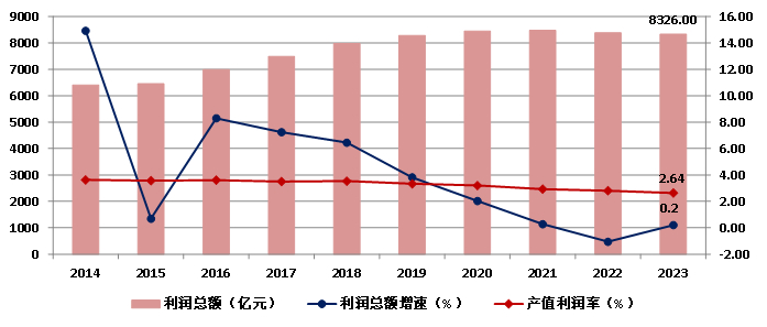 图9 2014-2023年全国建筑业企业利润总额及产值利润率