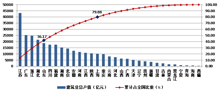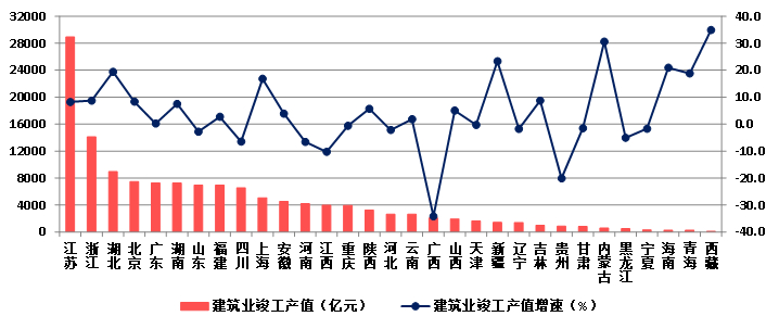 (一)江苏建筑业总产值以绝对优势领跑全国 藏、辽、新增速较快