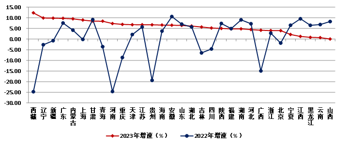 图16 2022-2023年各地区建筑业总产值增速