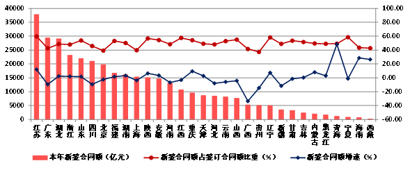 (五)江苏新签合同额超过3.7万亿元 14个地区出现负增长