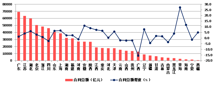 (四)广东签订合同总额继续排在榜首 9个地区出现负增长
