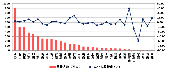 (七)15个地区从业人数减少 湖北劳动生产率领先