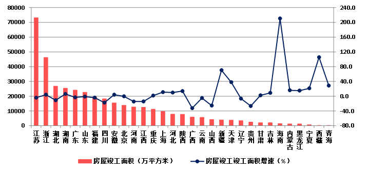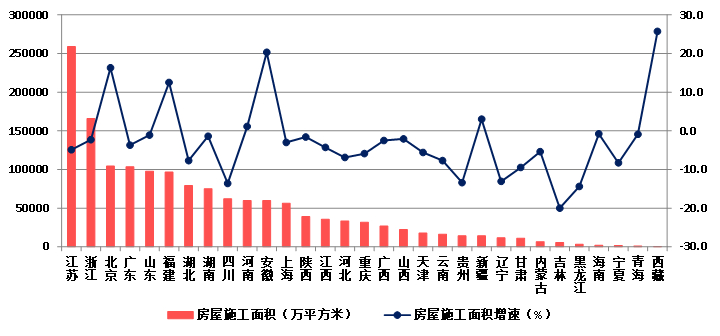 (八)25个地区房屋建筑施工面积下降 琼、藏房屋建筑竣工面积增速显著