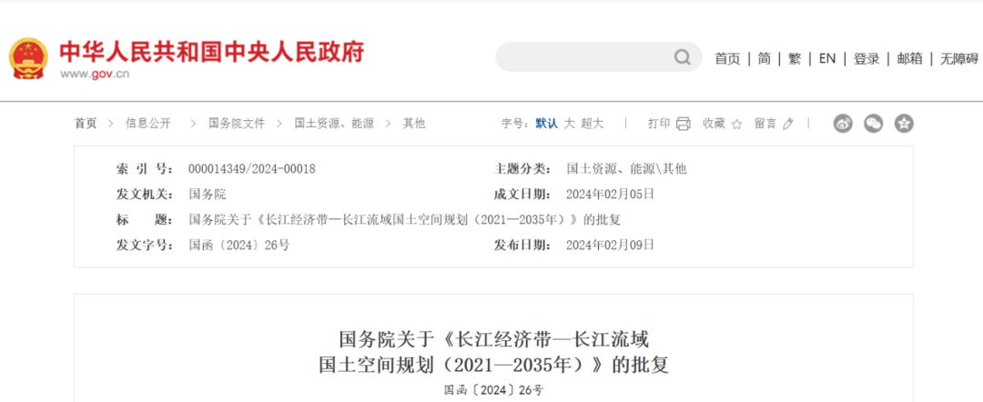 2024年2月9日,《长江经济带—长江流域国土空间规划(2021—2035年)》经国务院批复同意。
