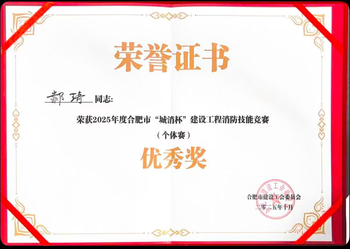 近日,由合肥市建设工会主办,合肥市城乡建设局工会、合肥城建消防事务中心、合肥市建筑业协会联合承办的2025年度合肥市“城消杯”建设工程消防技能竞赛圆满落幕。正煜建设集团凌震、刘红利、郝琦,分别代表庐阳区代表队与瑶海区代表队参赛,凭借扎实的专业知识与稳定发挥,在全市200余名消防行业精英选手中脱颖而出,荣获团体赛并列二等奖,同时郝琦还荣获个体赛优秀奖。