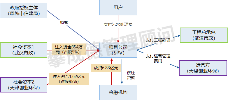 案例:恩施市大沙坝一期、二期(谭家坝)污水处理厂及配套管网工程特许经营项目的政府估算总投资为85430.45万元,新建项目建设期3年,运营期27年,本项目采用政府付费的回报机制。政府付费金额=污水处理单价×污水实际处理量×绩效评价系数。