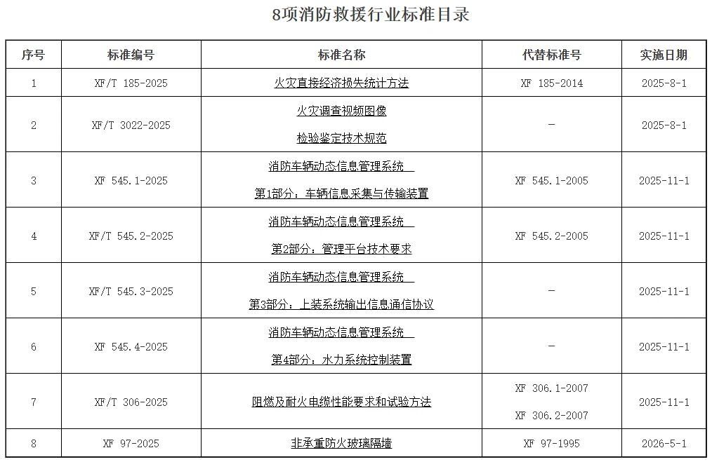 国家消防救援局颁发8项消防救援行业新标准!