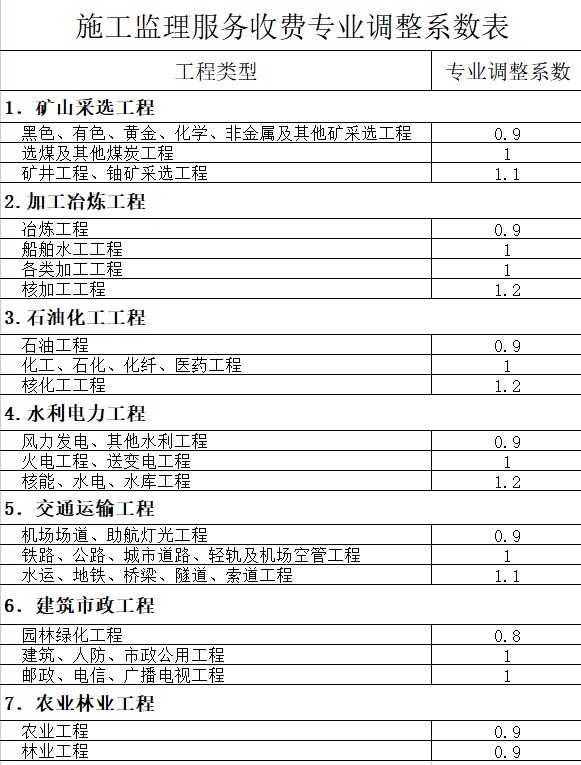 2、施工监理服务收费基准价=施工监理服务基价×专业调整系数×工程复杂程度调整系数×高程调整系数