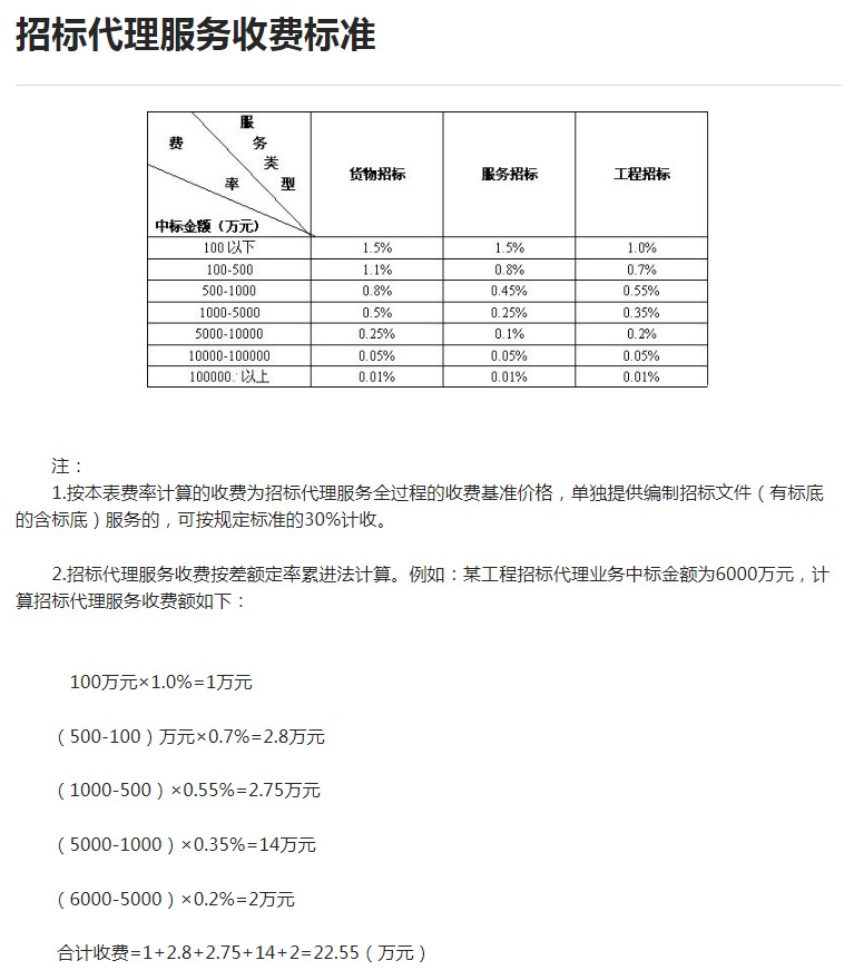 5.中标金额5000-10000万元,货物招标为0.25%,服务招标0.1%,工程招标0.2%。