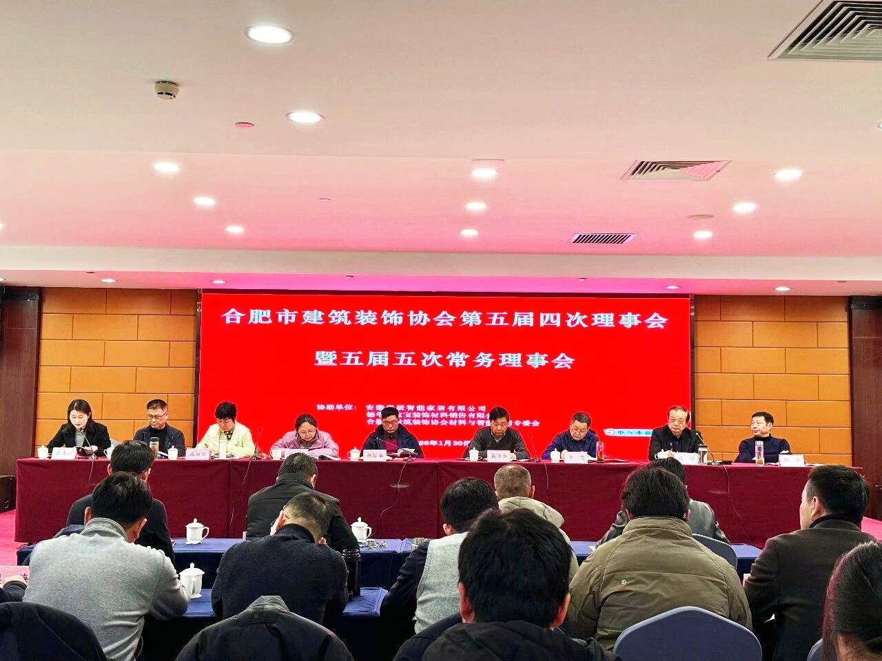 1月30日下午,合肥市建筑装饰协会第五届四次理事会暨五届五次常务理事会在安徽饭店圆满召开。市派党建工作指导员赵绘华、市城乡建设领域协会(中心)党总支书记戴晓盈、市城乡建设局四级调研员纵丽利、市建筑业协会党支部书记于飞、市建筑市场监督管理处高级工程师左丽丽出席;市装协会长、副会长、秘书长、监事室主任、监事、各专委会主任及秘书长、会员企业代表近200人参加会议。正煜建设集团作为协会常务理事单位应邀出席。