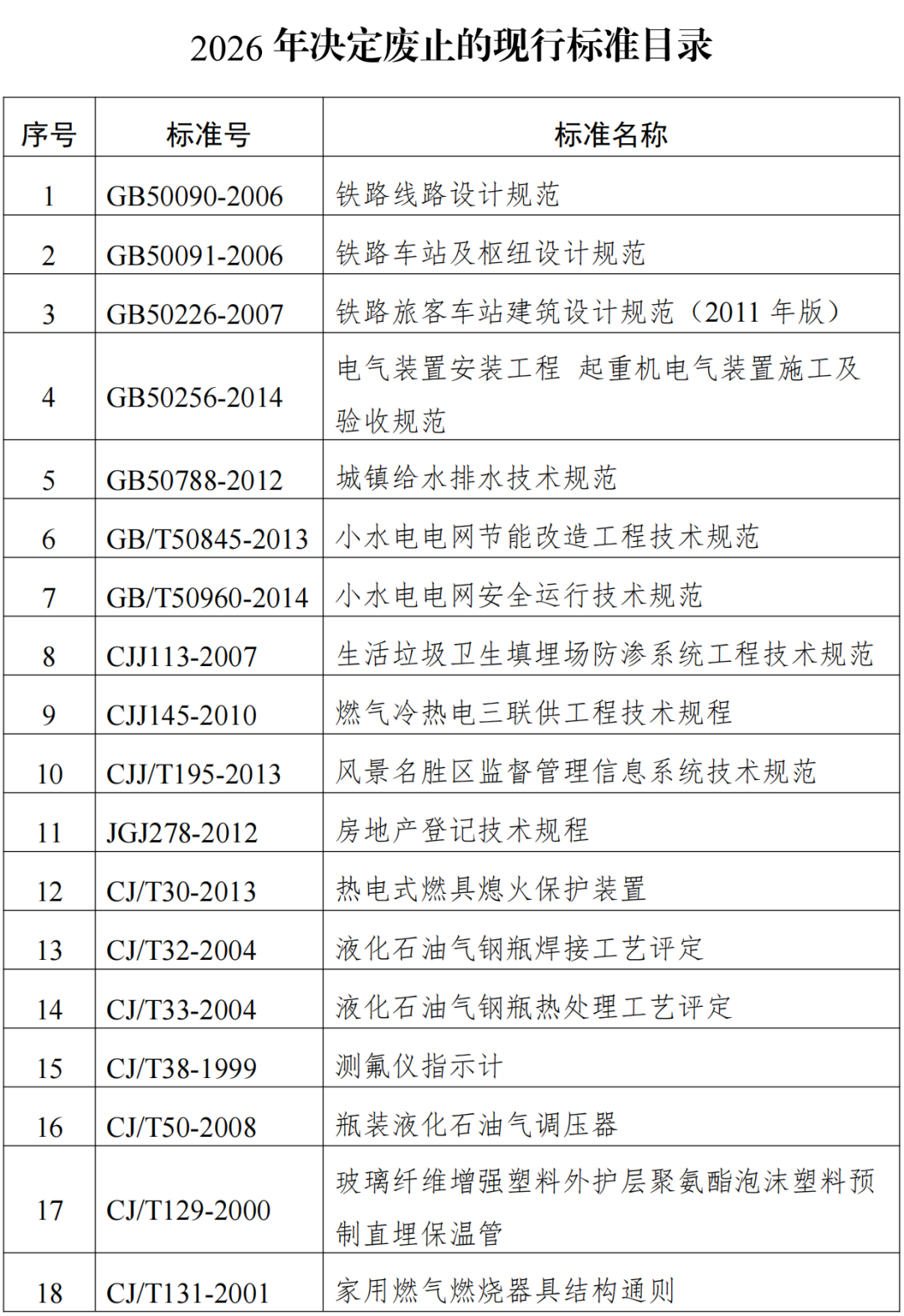 住房城乡建设部1月30日发布公告,决定废止《铁路线路设计规范》等72项现行工程建设标准。全文如下: