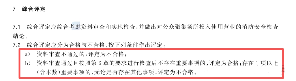 重要事项如果不合格的话,则视为不合格。因此公众聚集场所要高度重视这些内容,比如: