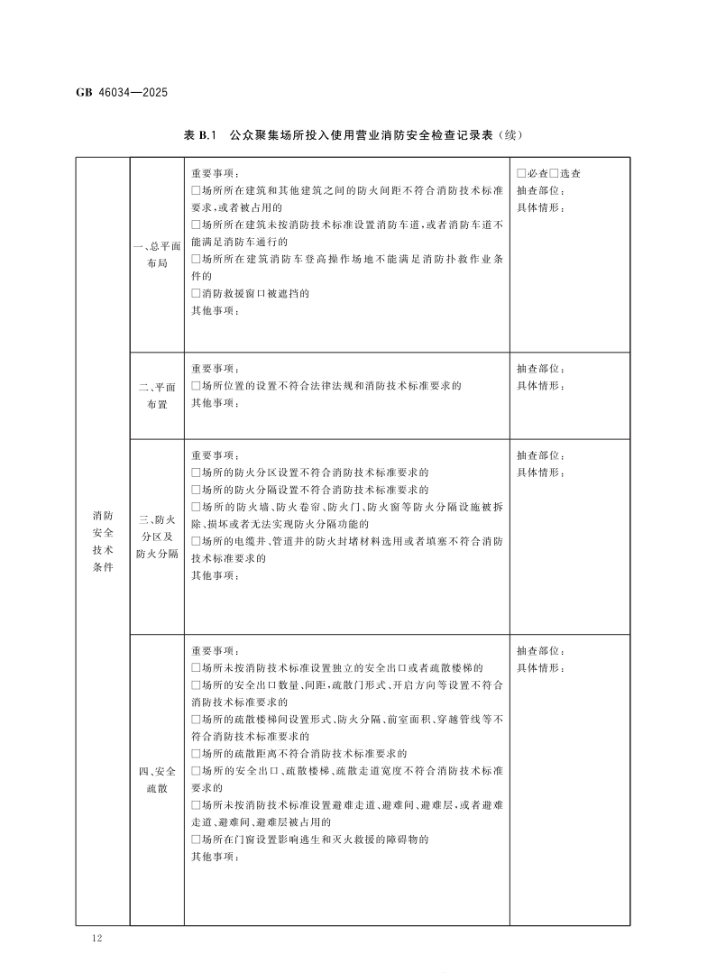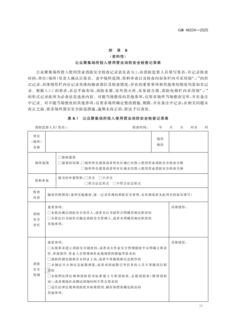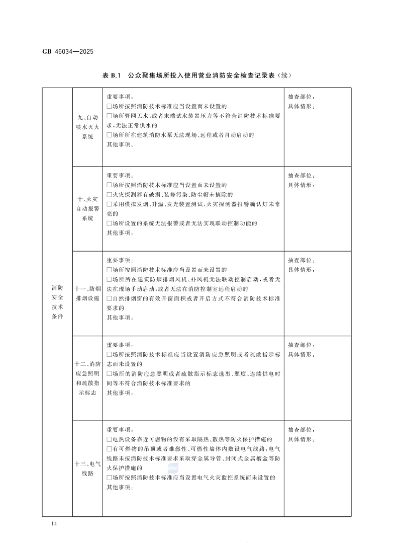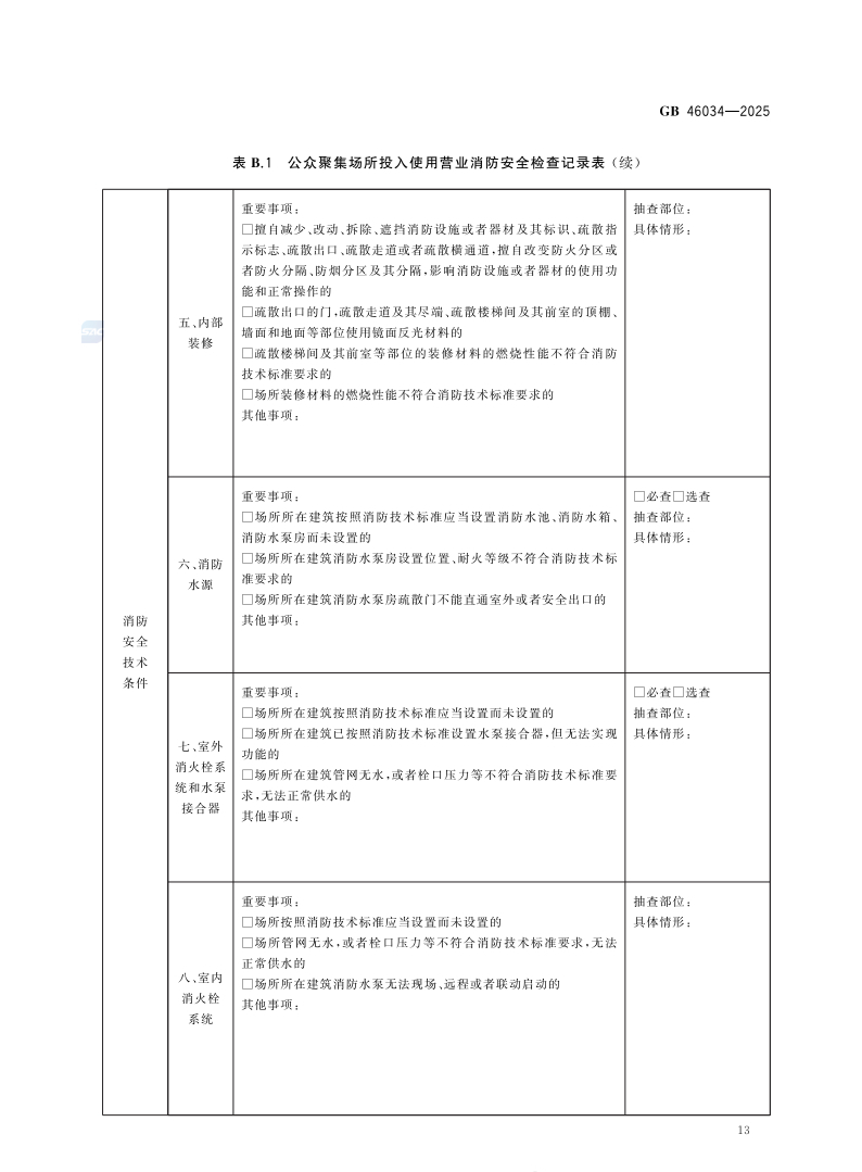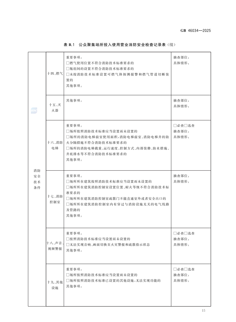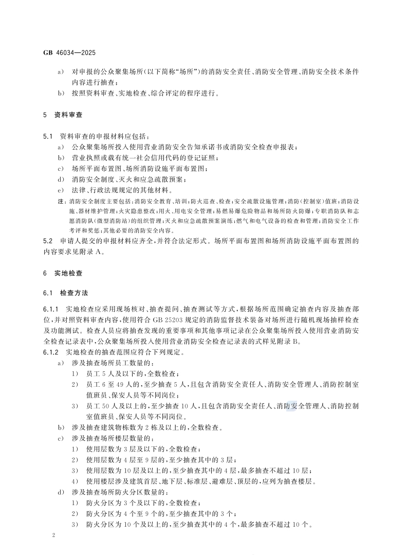 该标准规定了公众聚集场所投入使用营业消防安全检查的总体要求、资料审查、实地检查、综合评定、档案管理。适用于消防救援机构对公众聚集场所投入使用营业消防安全检查,包括对采用告知承诺方式办理的场所进行核查和对不采用告知承诺方式办理的场所进行检查。