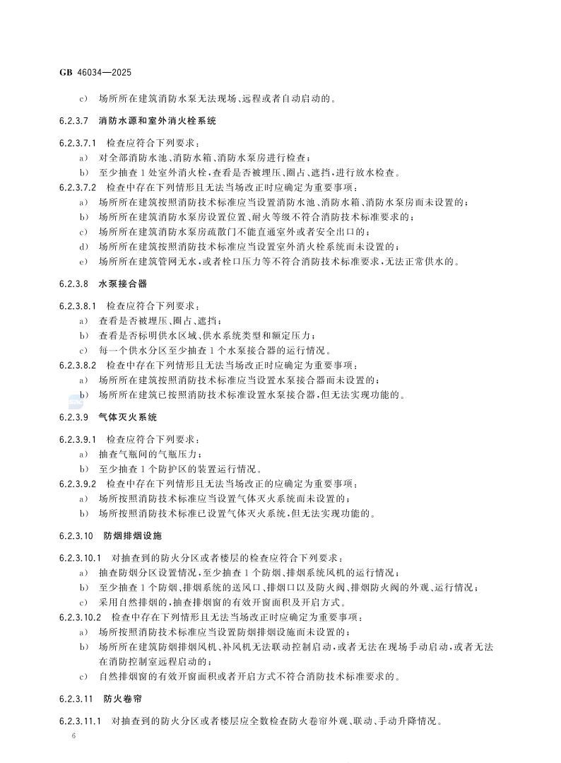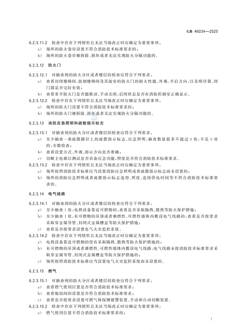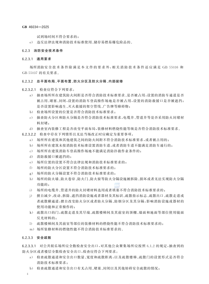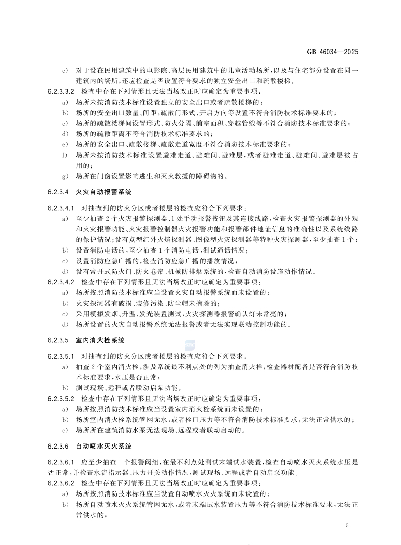 6.2.3.3.2检查中存在下列情形且无法当场改正时应确定为重要事项:a)场所未按消防技术标准设置独立的安全出口或者疏散楼梯的;