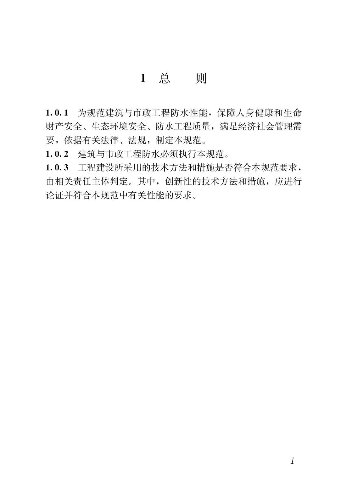 现批准《建筑与市政工程防水通用规范》为国家标准,编号为GB55030-2022,自2023年4月1日起实施。本规范为强制性工程建设规范,全部条文必须严格执行。现行工程建设标准中有关规定与本规范不一致的,以本规范的规定为准。同时废止下列工程建设标准相关强制性条文: