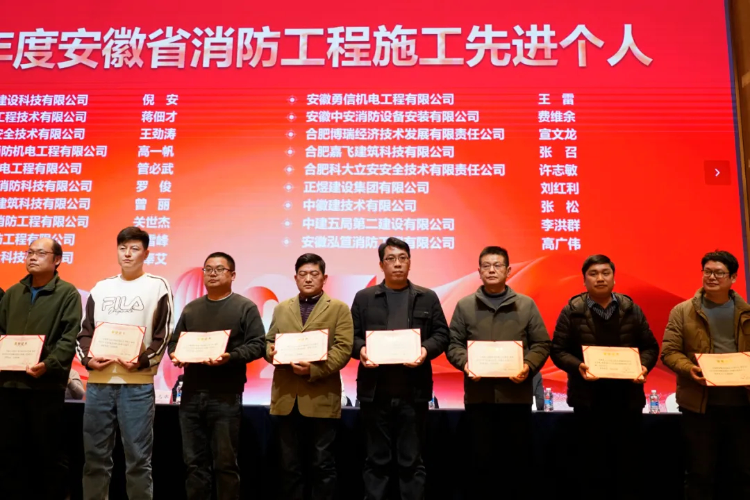 出席会议的领导为2024年度消防工程优秀施工企业、消防施工优秀项目经理、消防施工先进个人、消防技术服务优秀企业、消防技术服务先进个人、物业消防安全管理先进单位和保安消防安全管理先进单位以及优秀注册消防工程师、协会工作先进个人和协会特别奖获得者颁发奖状和证书。